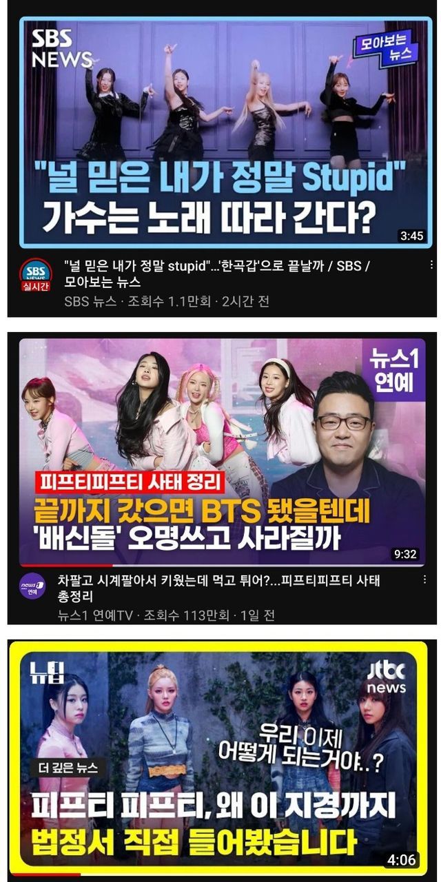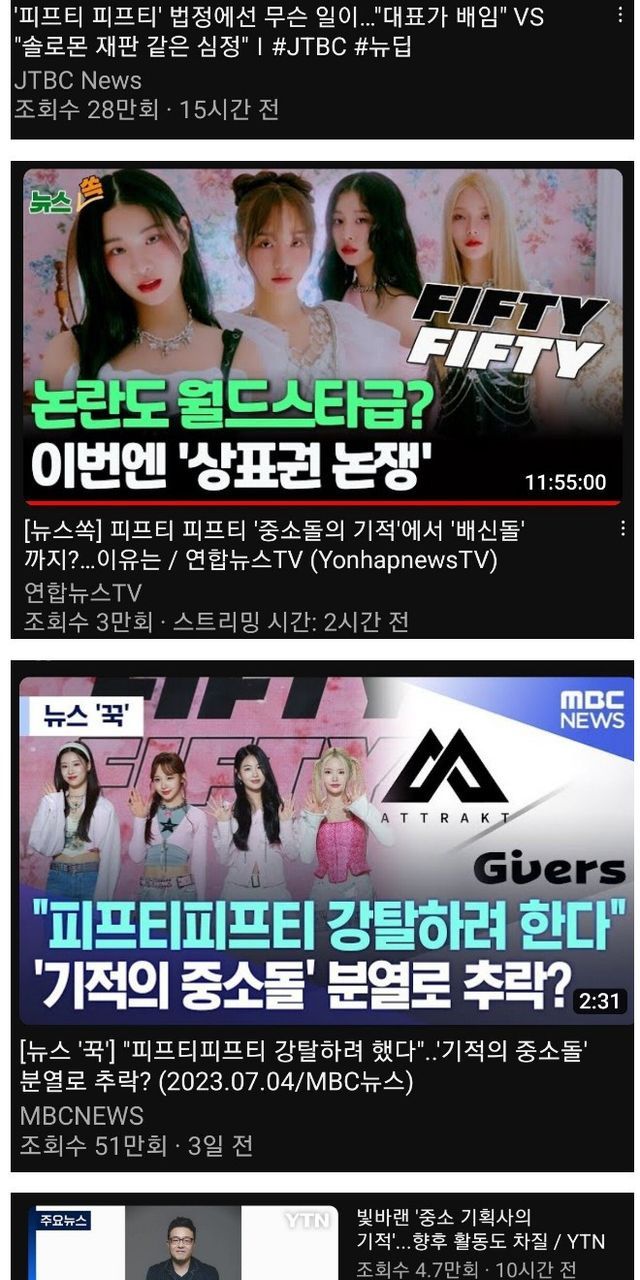 오늘자 공중파들에서 올린 피프티 썸네일 …