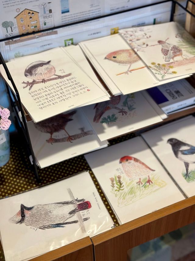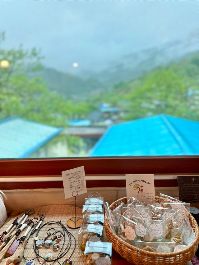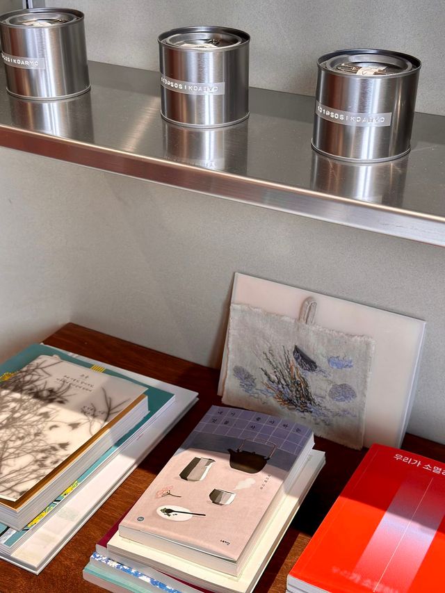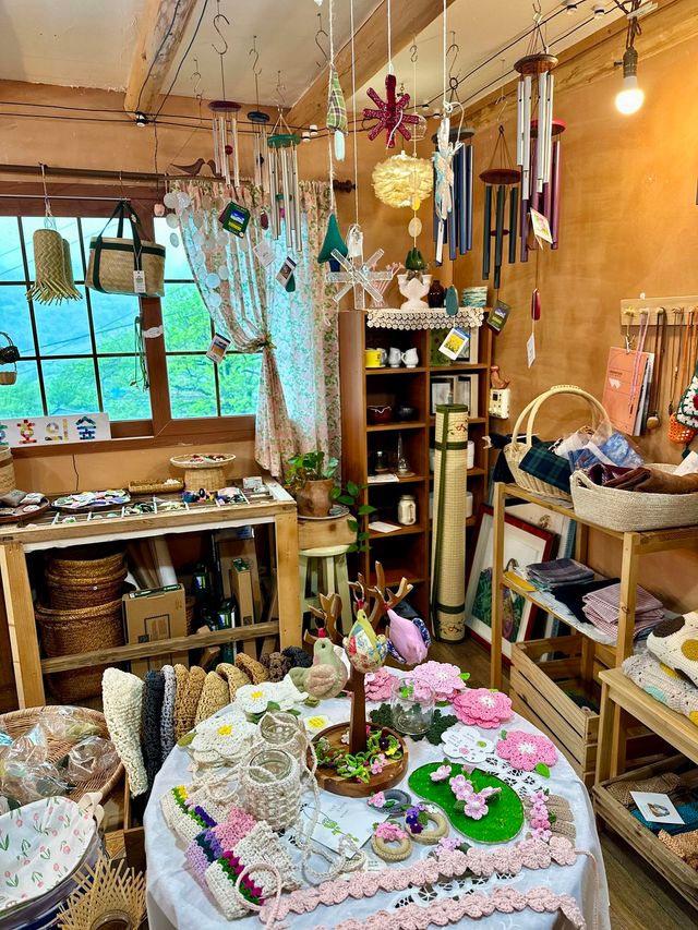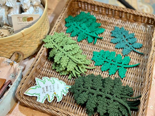 낯선 여행자는 물론 구례 이민자들이 마음 편히 들러 영감을 주고받고, 안부를 묻고, 사는 이야기를 나누는 다정한 쉼터처럼 느껴진다. 주인장이 이곳을 ‘호호의 숲 그리고 친구들’이라고 표현한 까닭일 테다. 구례, 하동 곳곳에 뿌리내리고 고유한 삶을 꾸리며 사는 창작자들의 정성스러운 수공예 물건들이 공간 구석구석 알차게 비치되어 있다. 구례 밤잼, 패브릭 북커버, 오방 쿠션, 압화 유리잔과 조명등, 뜨개 소품, 스테인드글라스 모빌, 천연석 장신구, 수제 원목장, 야생화 그림, 나무 목걸이 등 다채롭고 슬기로운 물건들이 빼곡하다.