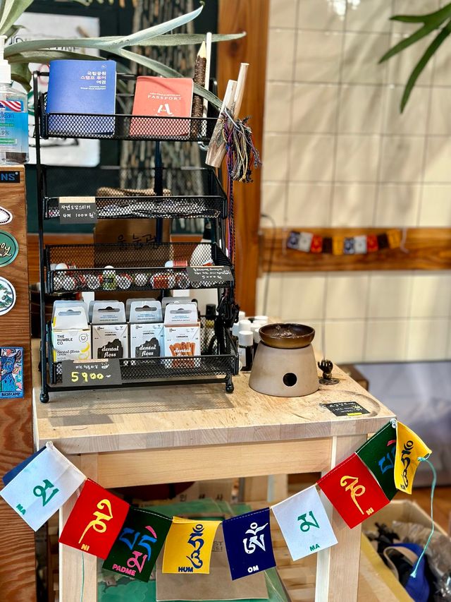 주인장 ‘아라’가 하이킹 탐험하며 직접 찍은 PCT 여행 사진 포스터, 일러스트레이터 민지홍(@jahgabee)의 아웃도어 드로잉 아이템도 소장 욕구를 부추긴다. 실크스크린 체험을 신청해 귀여운 그림 티셔츠를 손수 만들고, 구비된 여행 서적을 느긋하게 묵독하며 마살라짜이를 만끽하는 구례의 시간을 가져보시길. 주인장의 계획에 따라 종종 ‘산행 갑니다’ 푯말이 달릴 수 있으니 임시 휴무일 공지를 참고하도록!