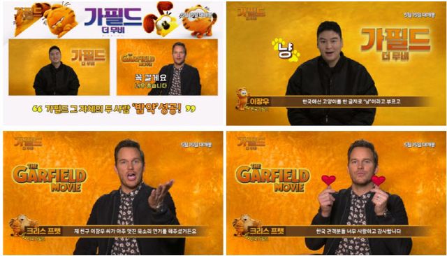 [이데일리 스타in 김보영 기자] 영화 ‘가필드 더 무비’에서 한국 ‘가필드’ 목소리를 연기한 이장우와 미국 ‘가필드’ 목소리를 연기한 크리스 프랫의 특별한 만남이 성사돼 화제다. 세상에서 가장 유명한 고양이 ‘가필드’의 유쾌한 매력을 각기 다른 개성으로 연기한 두 배우가 랜선 인터뷰를 통해 나눈 다채로운 이야기가 이목을 집중시킨다.