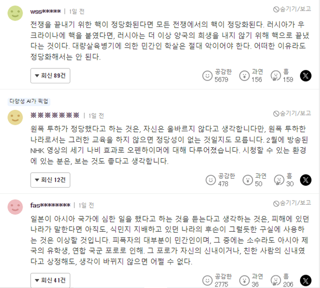 민간인(?) 들이 많이 죽었다며 여전히 원폭 맞은 자신들을 피해자로 생각하고 있는 일본인들.