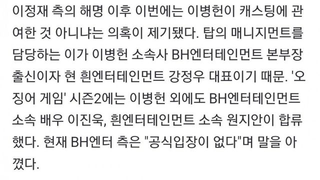 Bh는 이병헌 탑 캐스팅 배후설 부정도 안하고 공식입장 없다로 버티기중ㅋㅋㅋㅋㅋ