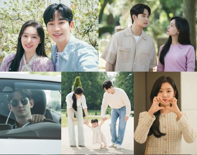 먼저 극 중 백현우, 홍해인 부부로 만나 기적 같은 사랑 이야기를 그려냈던 김수현과 김지원의 ‘백홍달콩’한 모멘트가 시선을 잡아당긴다. 얼굴을 맞대고 환한 미소를 띠며 셀카를 찍는가 하면 함께 자전거를 타고 바람을 느끼는 등 신혼을 만끽하던 이들의 모습이 광대 미소를 유발하고 있다.