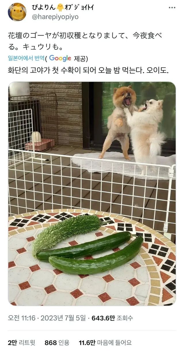 그냥 텃밭에서 오이를 첫수확할 내용일 뿐인데…