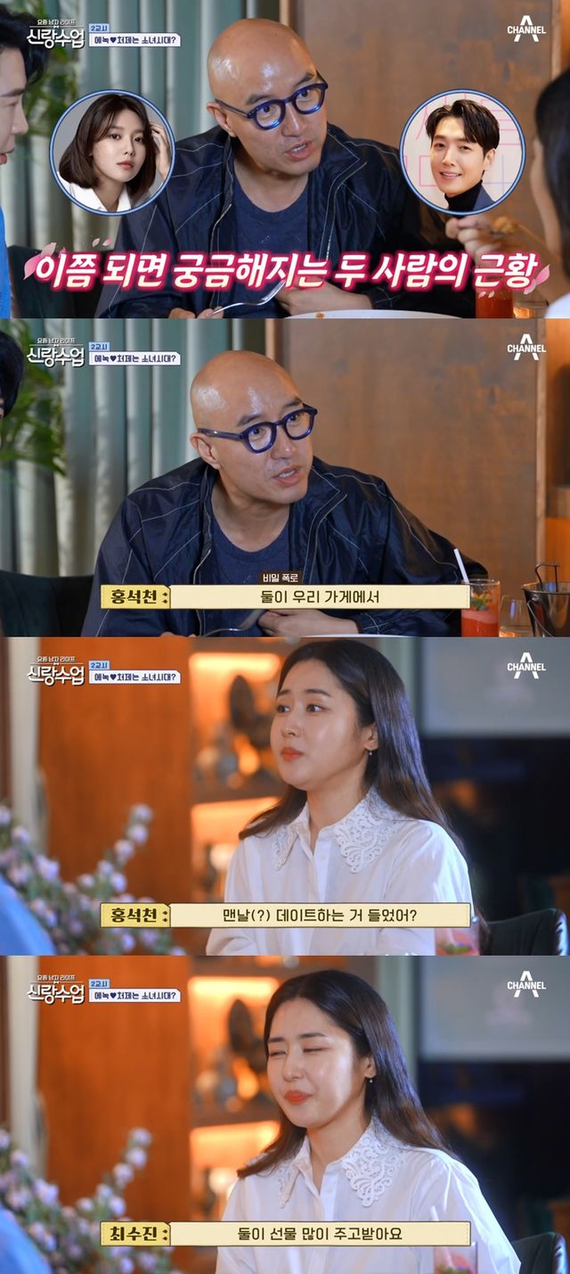 이날 홍석천은 최수진에게 "수영이랑 정경호랑 잘 지내냐"고 물었다. 최수진은 "너무너무 잘 지낸다"고 이야기했다.