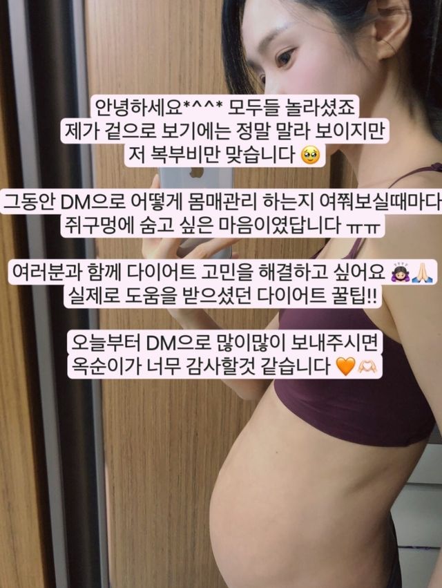 그는 "그동안 DM으로 어떻게 몸매 관리하는지 여쭤보실 때마다 쥐구멍에 숨고 싶은 마음이었답니다"라고 솔직하게 털어놨다.