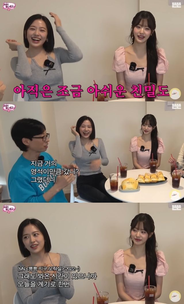 유재석은 "아까 오기 전에 안유진에게 '지금 거의 나영석만큼 (친밀도가) 갔니?'라고 물어봤는데, '아직 조금 모자라요'라고 하더라"고 말했다.