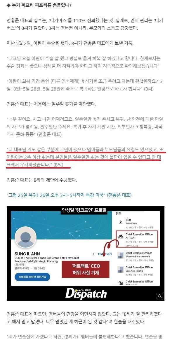 아픈 멤버 2주 쉬는데 다른 멤버들 1주만 쉬어서 불만 가질수 있다라는 말이 나오면
