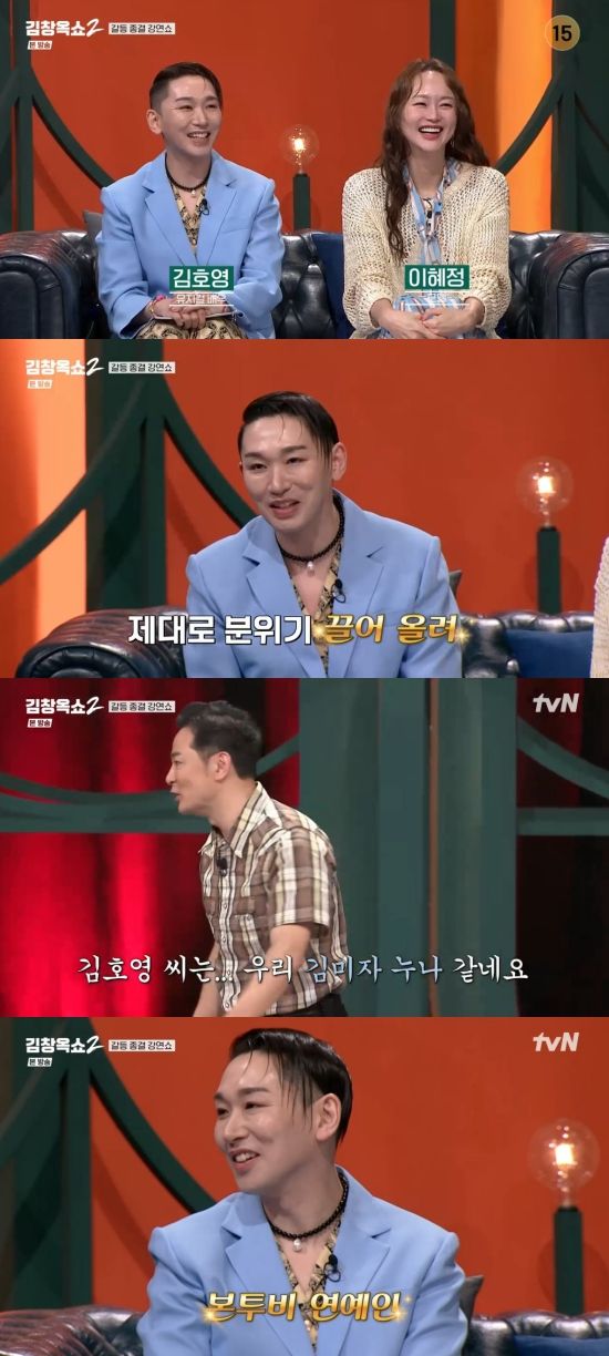 김호영은 "오늘 나온 김에 제대로 분위기를 끌어올려보도록 하겠다"라며 밝혔고, 김창옥은 "우리 김호영 씨는 저희 김미자 누나 같다. 엄청 친근하고"라며 털어놨다.