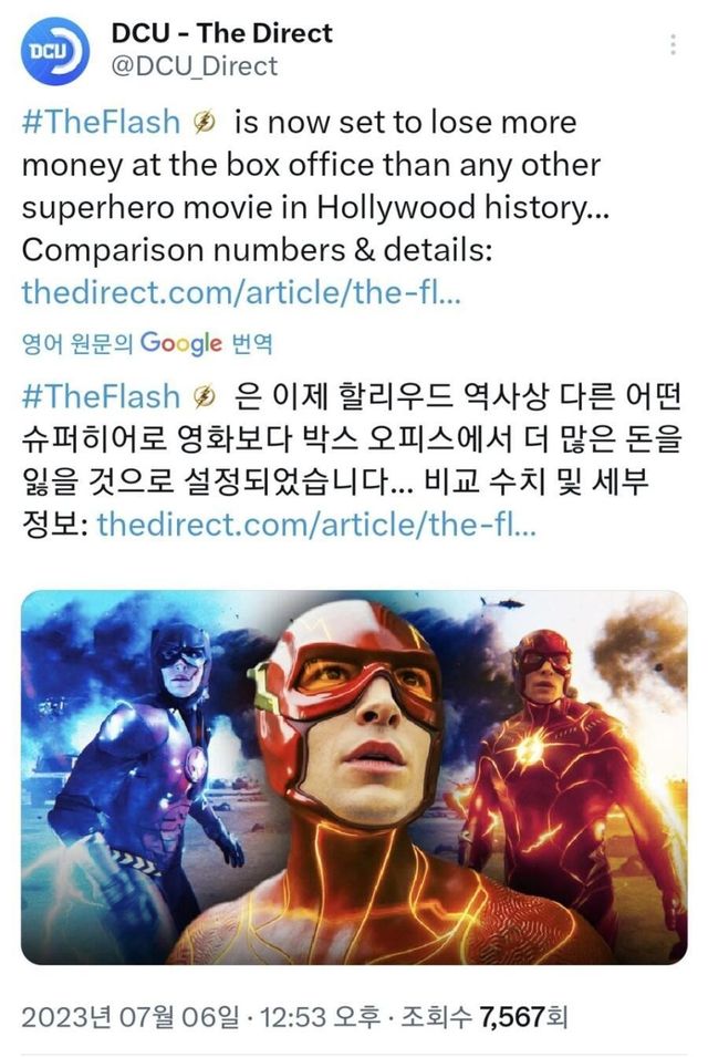 슈퍼히어로 흥행 실패작 상위 10위(물가 상승률 미조정) 목록은 다음과 같습니다: