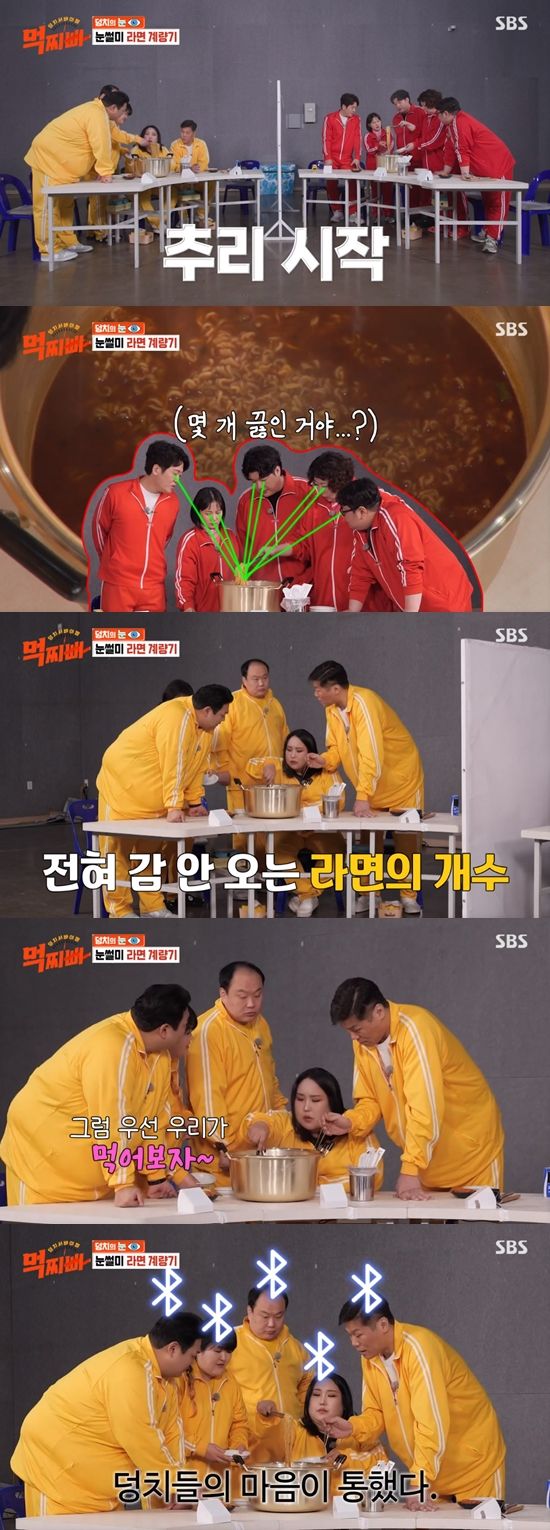 '덩치의 눈'은 라면의 양을 보고 몇 개인지 정확히 맞히면 성공하면 미션이었다.