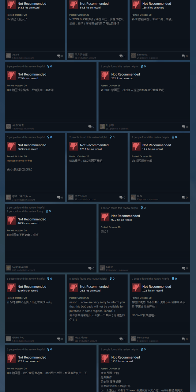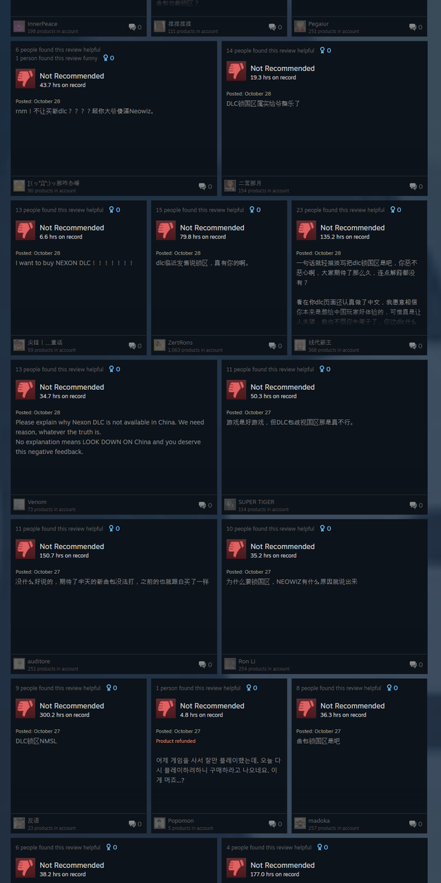 느그나라 정책때문에 발매를 할수가없는데 느그나라에 넥슨 콜라보 DLC를 발매 안해서 뿔난 짱.개.벌.레들이