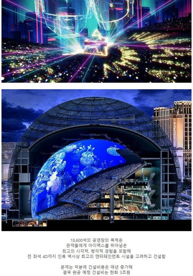 건축물의 상징인 구형 16K LED 디스플레이의 시연 테스트를 진행
