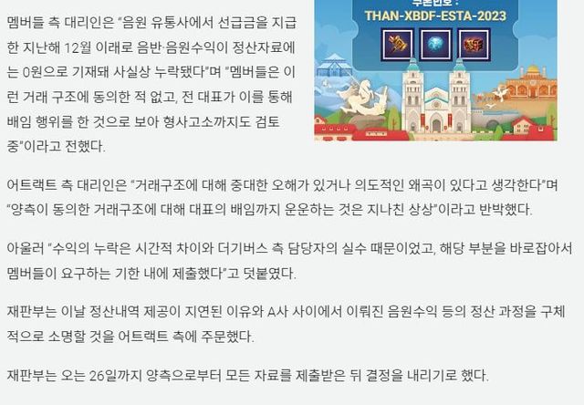 소속사 : 오류있던건 ㅇㅈ 근데 그거 프로듀서회사 측에서 낸 오류였고