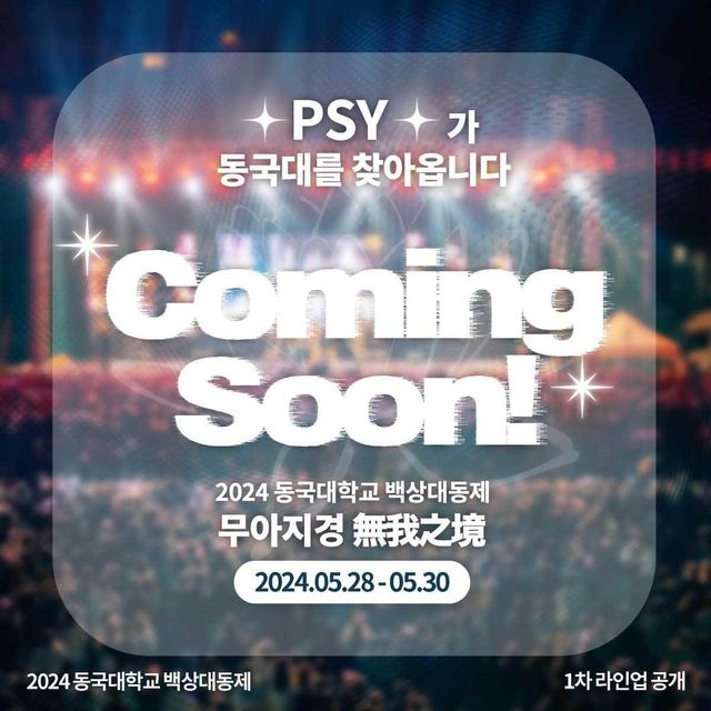 현재까지 밝혀진 동국대 축제 라인업은 '싸이(PSY), 데이식스(DAY6), 10CM 등이다.