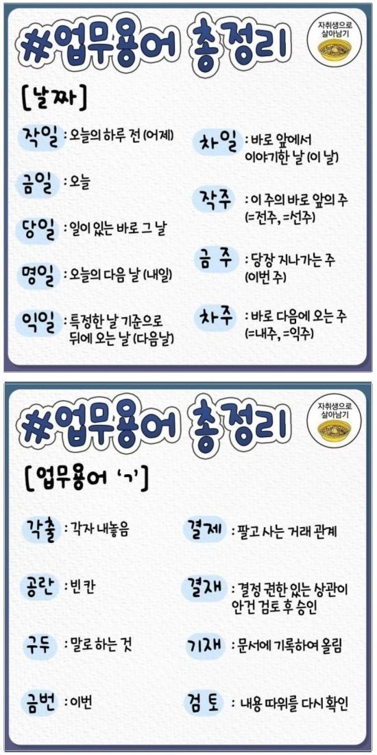 꿀팁 회사 업무용어 모음 ! 기초용어들!