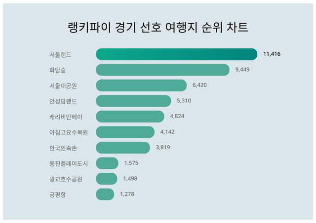랭키파이는 경기 선호 여행지 부문의 통합적인 트렌드지수 순위는 물론, 성별 및 연령별 선호도를 함께 분석했다.