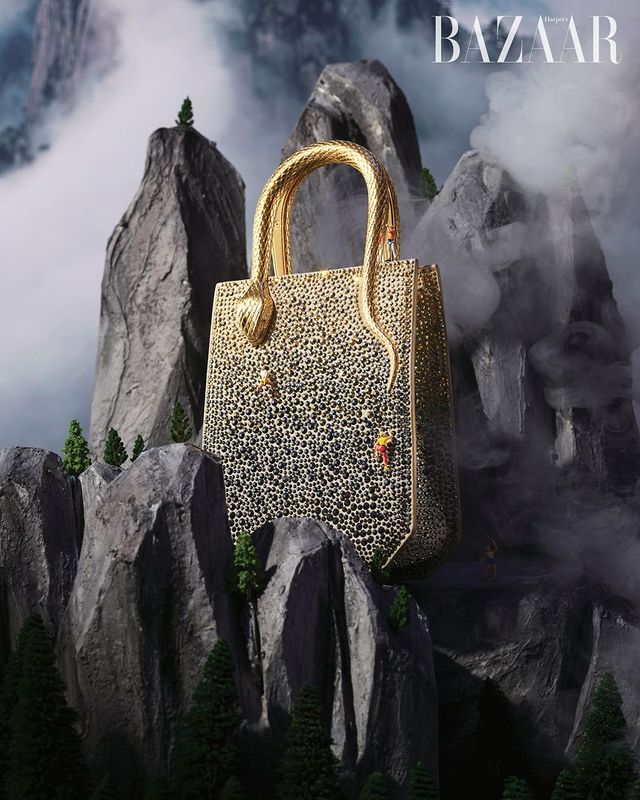 구름이 코앞에서 느껴질 만큼 높디높은 돌산이 마지막 여행지다. 우뚝 솟아 있는 미니 백의 뱀 모티프 핸들이 웅장한 존재감을 발산한다. 백 보디에 세팅한 크리스털이 화려한 매력을 배가하며, 파티 룩은 물론 티셔츠와 데님 팬츠 등 데일리 아이템과 매치해도 포인트 아이템으로 제격이다.