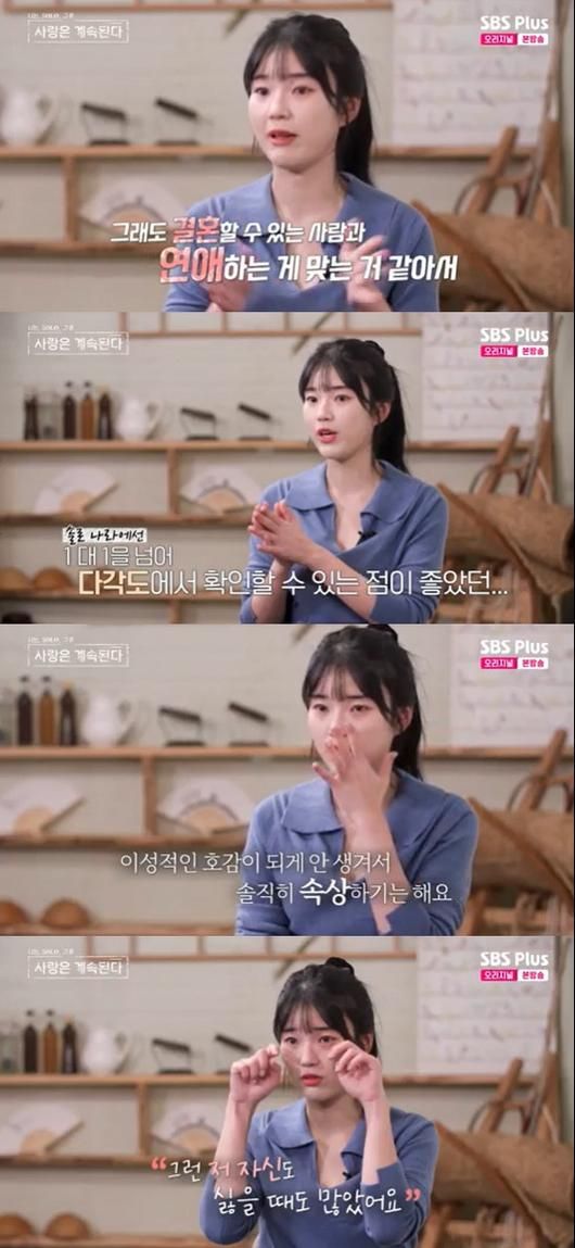 [메디먼트뉴스 김민정 기자] 2일 방송된 SBS Plus, ENA 예능 프로그램 '나는 SOLO, 그 후 사랑은 계속된다'(이하 '나솔사계')에서는 11기 순자가 고독 정식을 자처하며 눈물을 흘리는 모습이 방영되어 시청자들의 공감을 불러일으켰다.
