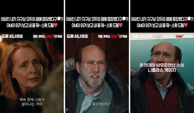 CGV 인스타그램을 통해 최초 공개된 메인 예고편 역시 스토리에 대한 호기심과 기대감을 한층 더 끌어올린다. ‘드림 시나리오’ 메인 예고편은 존재감 제로였던 대학교수 ‘폴’이 전 세계인의 꿈에 등장하며 모두가 그를 알아보는 사건으로 시작한다. 곧 ‘폴’은 환호와 박수갈채를 받으며 뉴스 출연은 물론, 화보 촬영까지 하는 등 세계적인 유명 인사가 되고, 그의 유명세는 가족들에게까지 영향을 미치게 된다. 그러나 ‘폴’이 등장하는 모든 꿈이 갑자기 악몽으로 바뀌면서 그를 대하는 사람들의 태도가 바뀐다. 그의 차에 ‘LOSER’라고 낙서하며 조롱하는가 하면, 식당에서 그의 그릇에 침을 뱉고, 수강생들이 그의 사진을 보는 것만으로도 공포에 질려 도망가는 등 순식간에 뒤바뀐 사람들의 모습에 과연 ‘폴’이 어떻게 이 상황을 헤쳐 나갈지 눈을 뗄 수 없는 스토리 전개로 호기심을 자극한다.