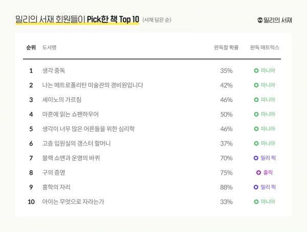 밀리의서재(대표 박현진)는 710만 밀리의서재 회원들이 선택한 콘텐츠 탑(TOP) 10을 발표하고, 이 중 다가오는 5월 연휴를 맞아 읽으면 좋은 책도 추천한다.