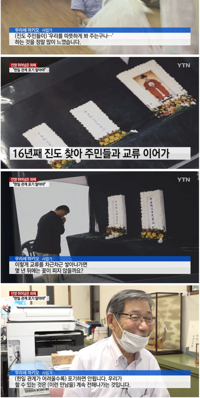 저 사람은 명량에 참전했던 사람의 후손으로 이야기를 들은 후 16년째 와서 왜덕산하고 이순신 장군에게 참배하고 있다고 한다.