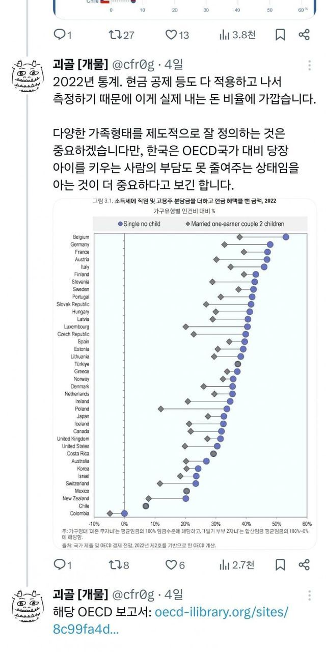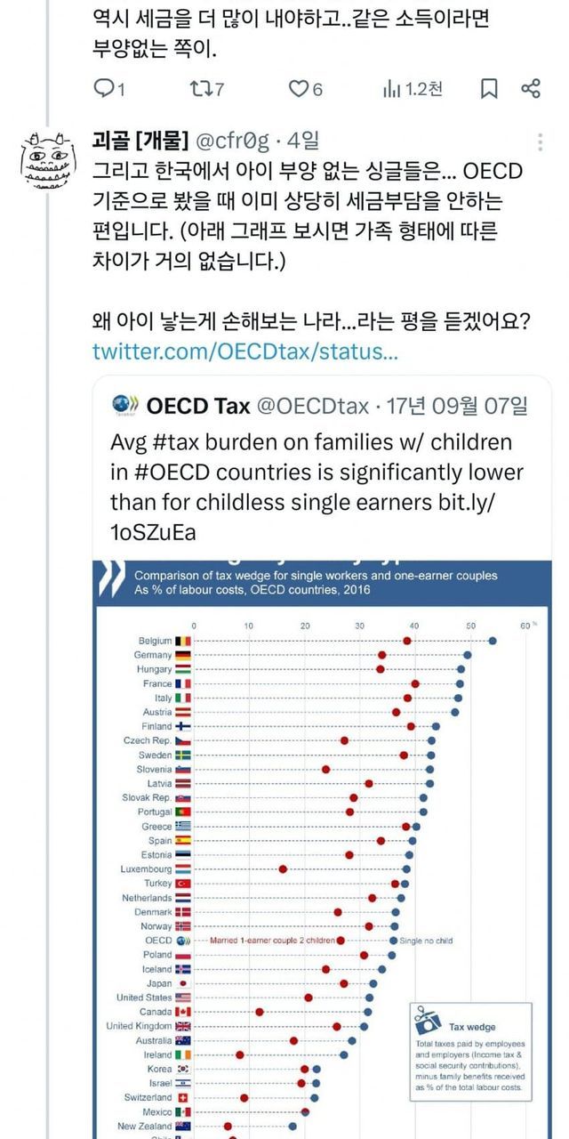 나라 자체와 미래세대가 유지될려면 1인가구쪽에 세금을 많이 거둬야한다 (OECD 기준으로 우리나라가 세금 적게내는 편임)