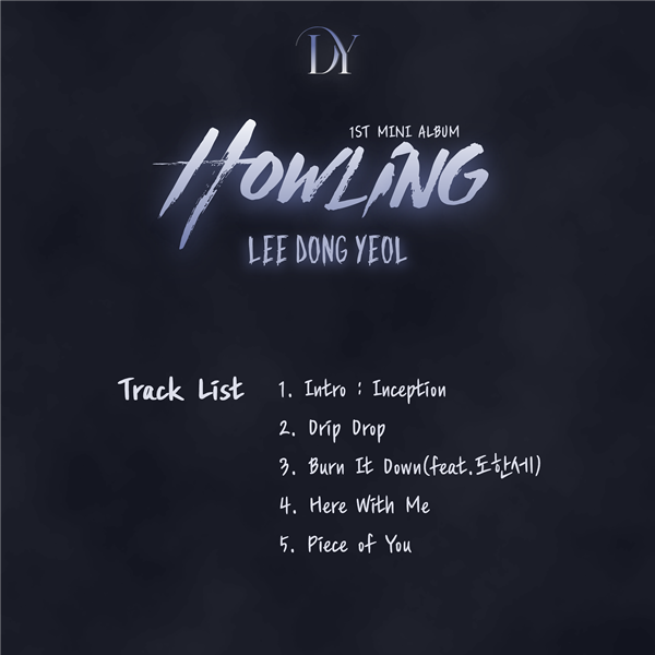 신보 'Howling'은 타이틀곡 'Drip Drop'을 비롯해 인트로곡 'Intro : Inception', 'Burn It Down', ‘Here With Me’, ‘Piece of You’ 5개의 곡으로 이루어졌다.