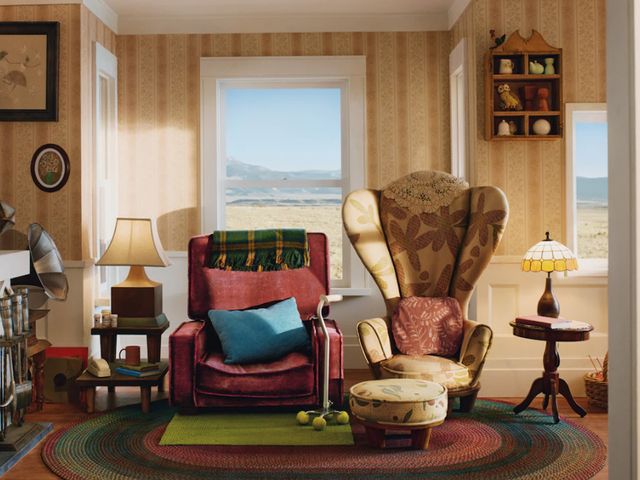 숙소 내부에는 칼 할아버지와 엘리 할머니의 안락의자, 지팡이, 어드벤처북까지 있어 실제 영화 속 한 장면처럼 세심한 디테일이 돋보입니다.