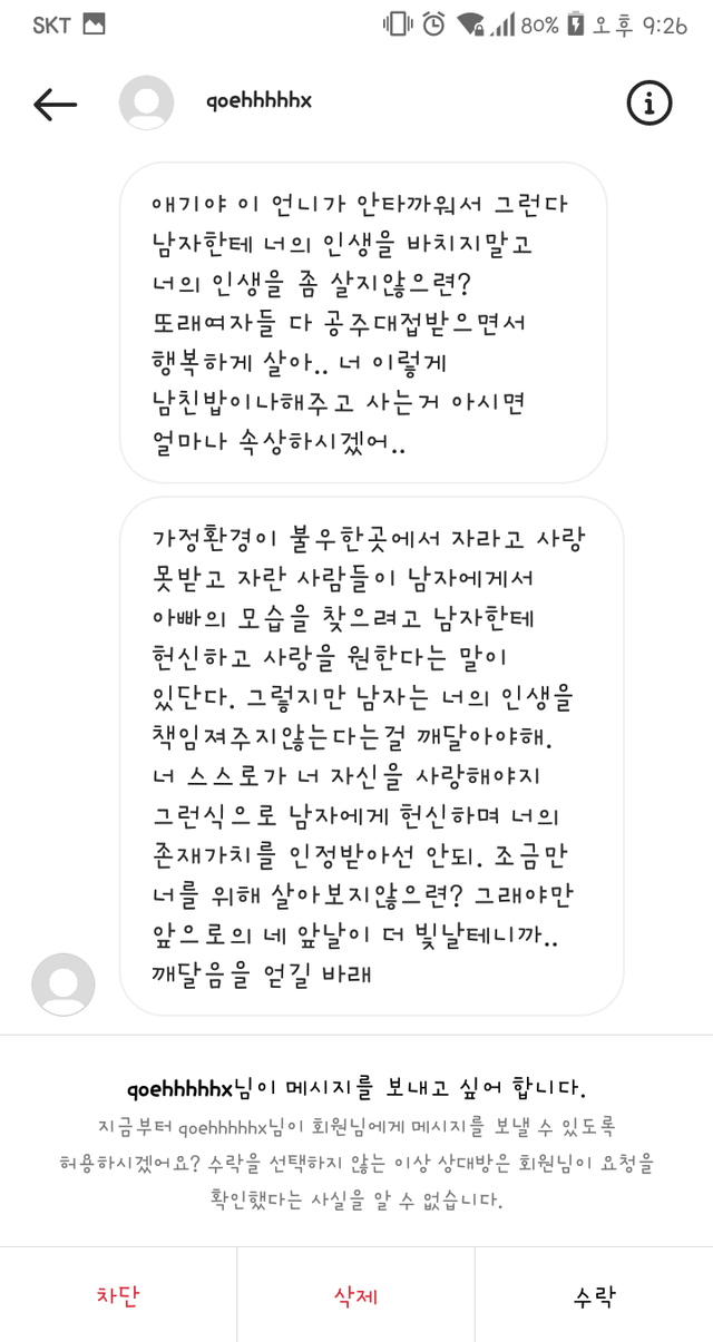 어느날 여시 언냐들 눈에 띄여 악플과 욕설 메세지 세례를 받게되는데…