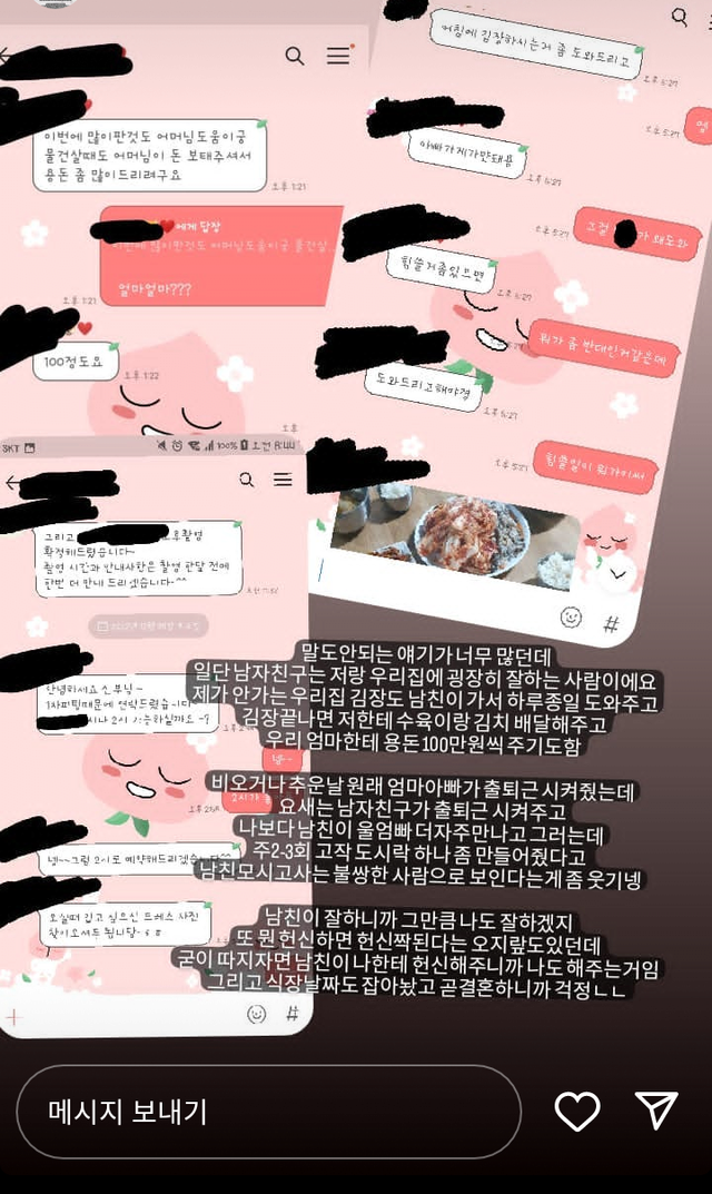 펨순이의 부모님에게 용돈을 드릴 정도로 남친의 사랑을 받고있었으며