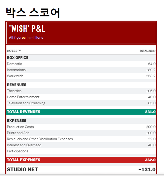 1억 3100만 달러 적자