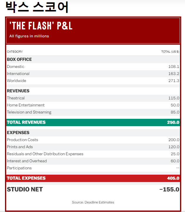 1억 5500만 달러 적자