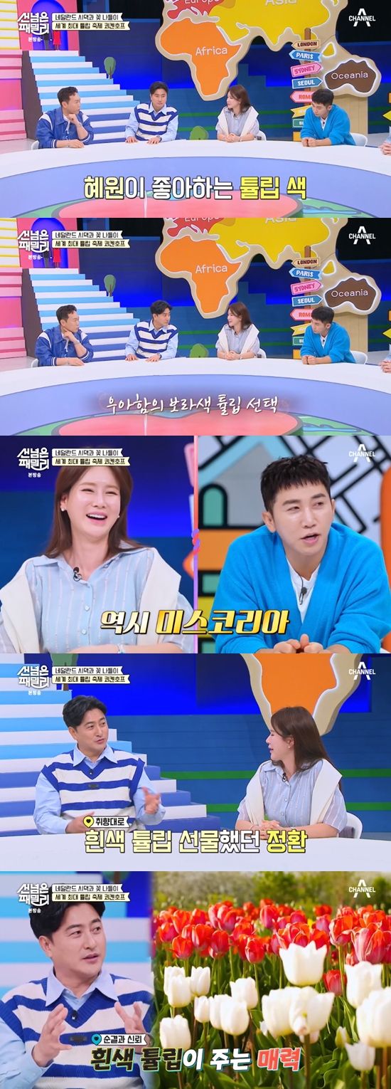 이혜원은 "남편이 제일 좋아하는 꽃이 튤립"이라고 밝혔다. "알레르기 있지 않냐"는 질문에 안정환은 "알레르기 생기기 전까지"라고 대답했다.