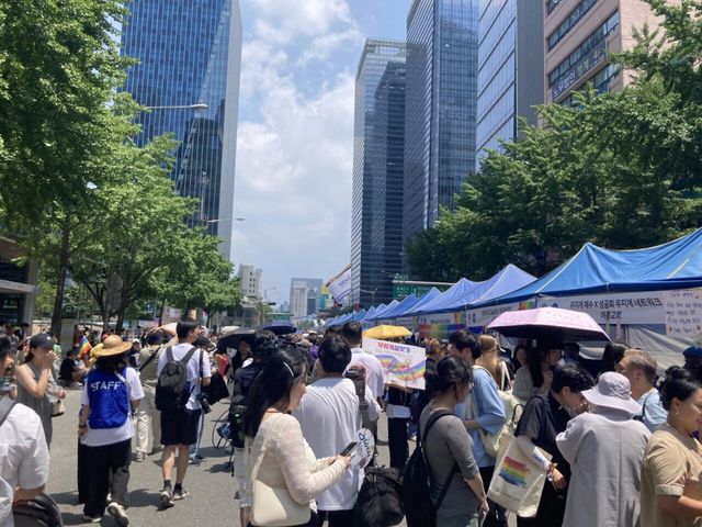 회사 앞에 시끄러워서 나와보니까 퀴어 축제 하고 있음 ㄷㄷ