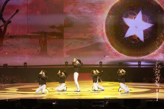 공연이 시작되자 다섯 갈래로 나뉘어 등장한 멤버들은 메인 무대로 모였다. 리프트가 올라가며 연준이 왕관을 쓰는 동작을 취하며 공연이 시작됐다. 다섯 갈래의 무대는 2019년 발표된 ‘별의 낮잠’ 뮤직비디오 속 다섯 갈림길을 형상화했다. 이어 360도로 활용 가능한 메인 무대에는 특수 제작한 크랙 리프트가 설치돼 높낮이 및 기울기가 개별 조정되어 멤버들은 단조롭지 않은 무대를 선보일 수 있었다.