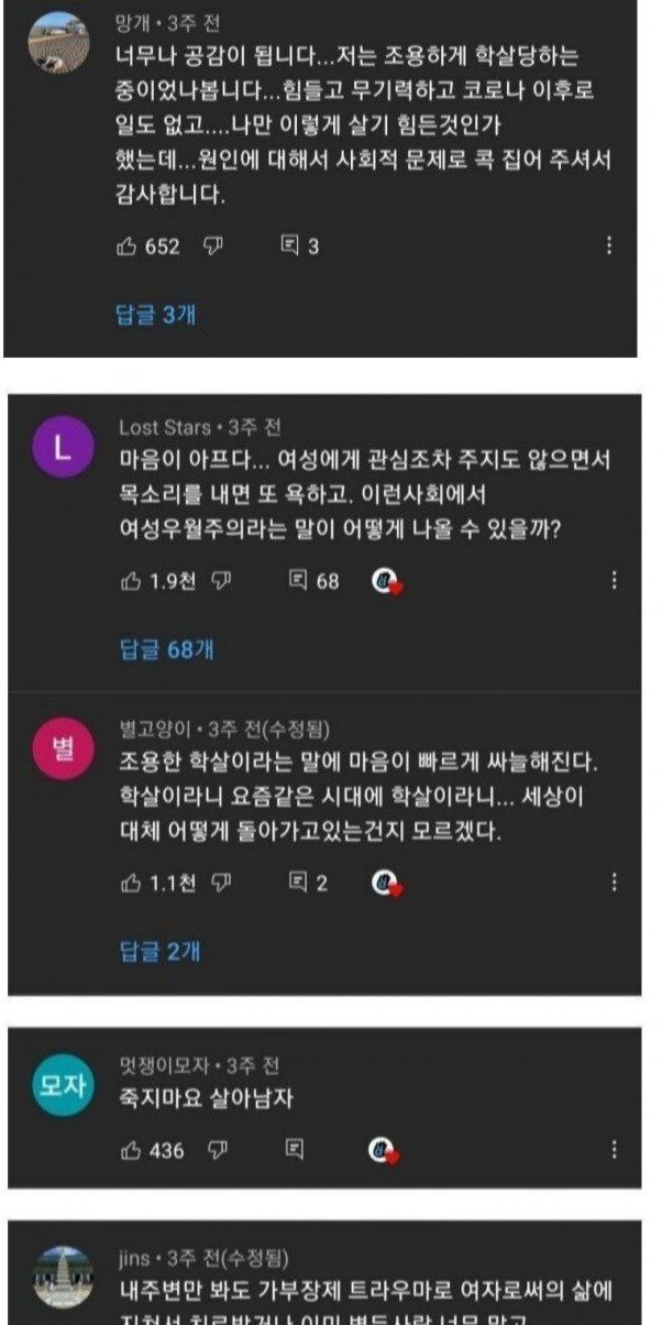 군대도 안가는 특권계층들이 20대 여성 자살률이 남성보다 높다 사회로부터 조용히 학살당하고있다 죽지말고 살아남자 하고있는 현실이 유머