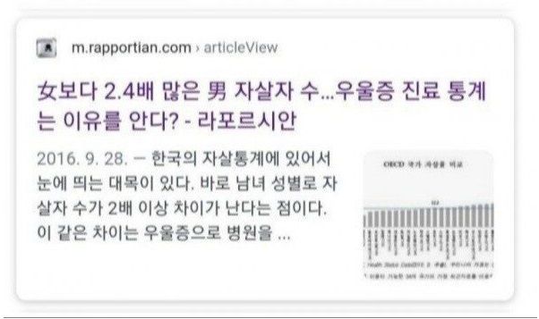 그거에 뻑이간 페미들은 조용히 학살당하는데 사회가 뭐해준게 있냐며 사회탓 시전함 그래서 자살률 찾아봄