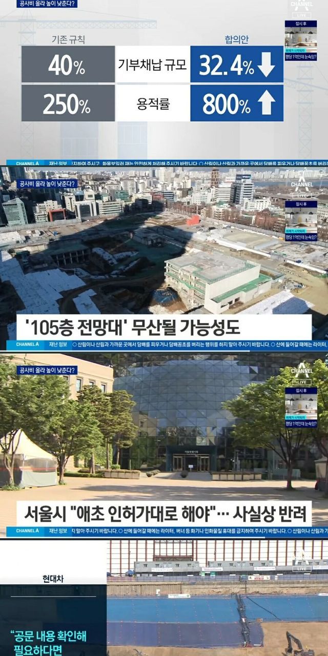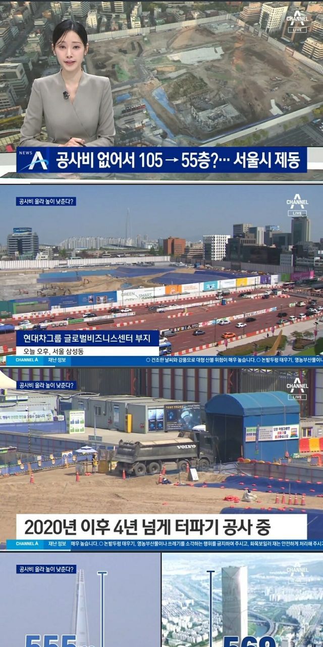 105층 빌딩에서 55층 빌딩 두 동 변경안 제시했는데