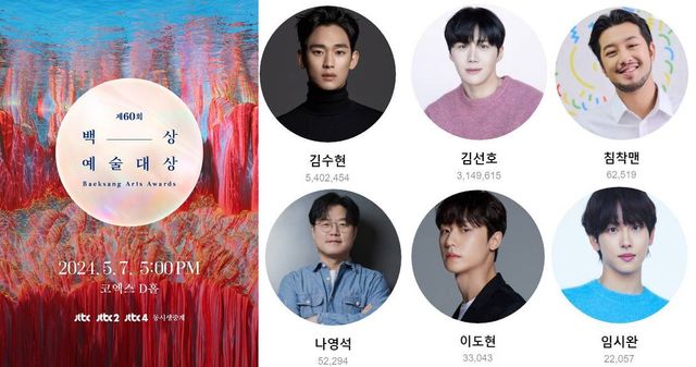 오는 7일 서울 강남구 코엑스에서 열리는 '60회 백상예술대상'. 지난달 25일 12시부터 인기상 투표가 진행되고 있고, 4일 오후 2시에 마감된다.