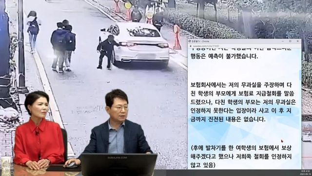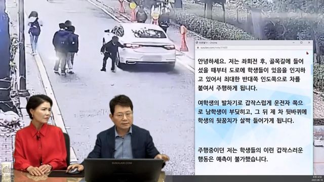 블박차 운전자는 무죄를 주장 -> 근데 남학생의 부모가 끝까지 블박차 과실 있다고 늘어지는중