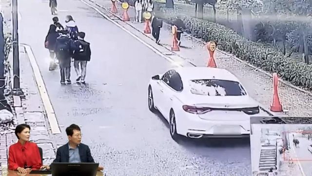 여학생이 발차기 함 -> 남학생이 그거 피하려다 오던 차에 발목 밟혀버림