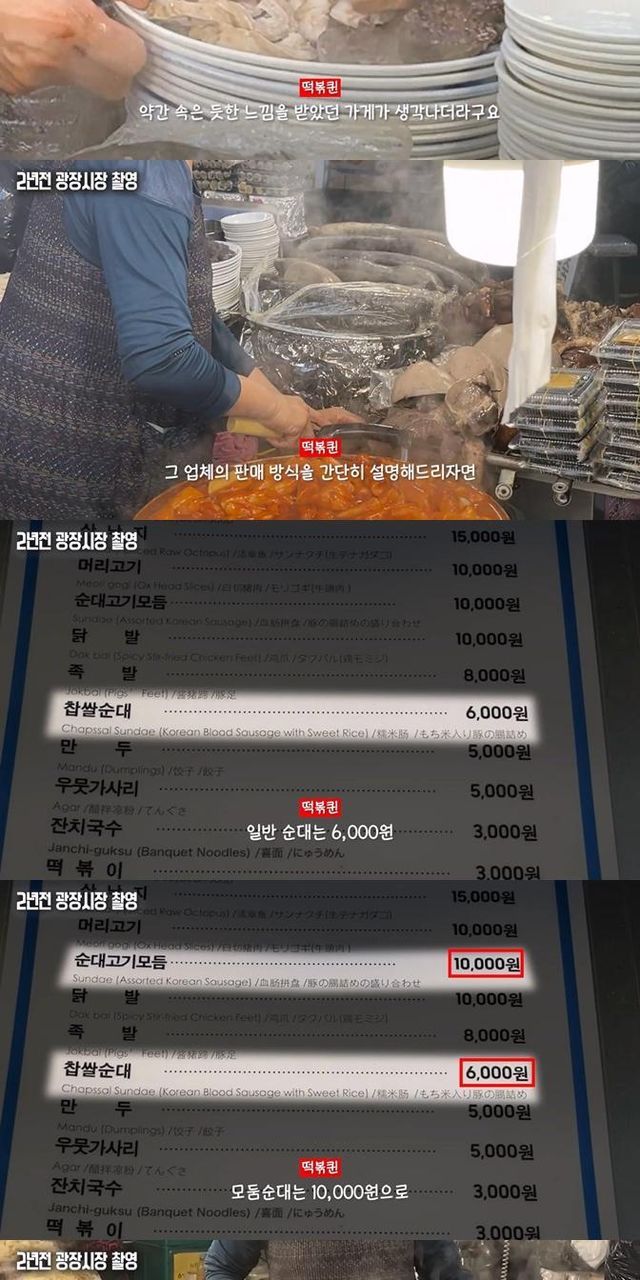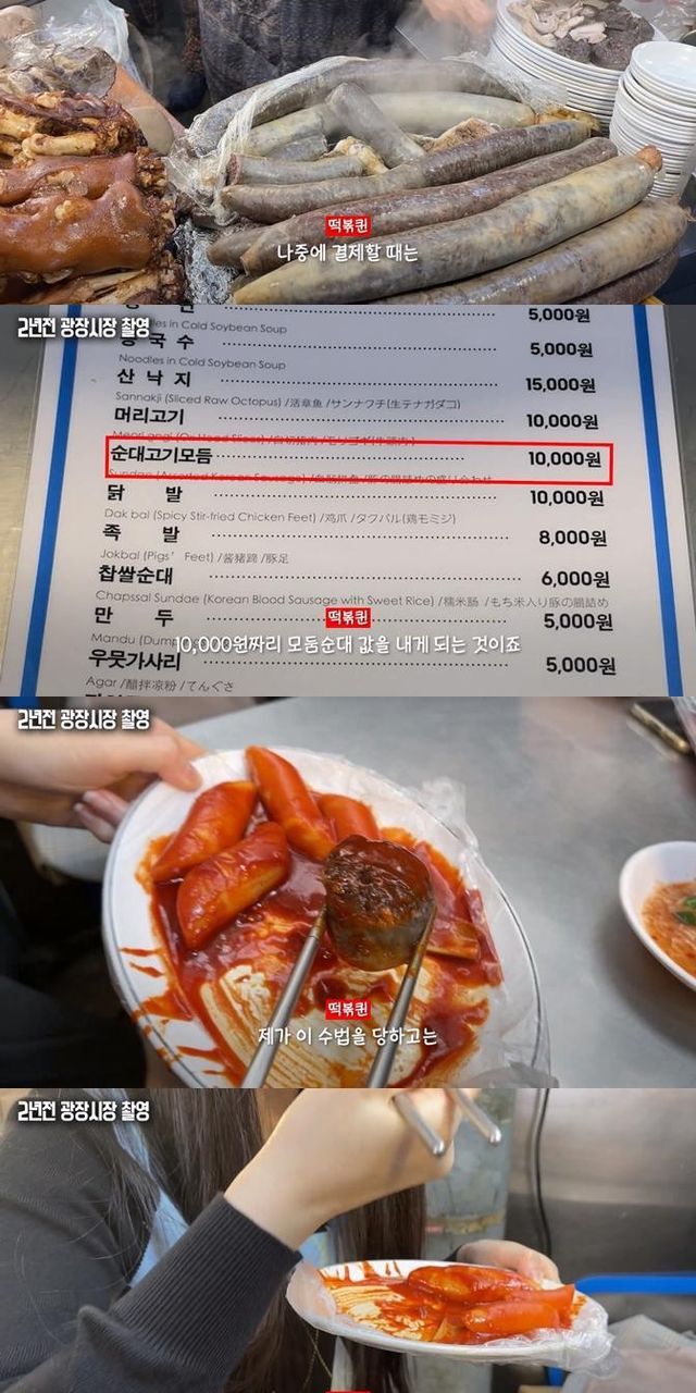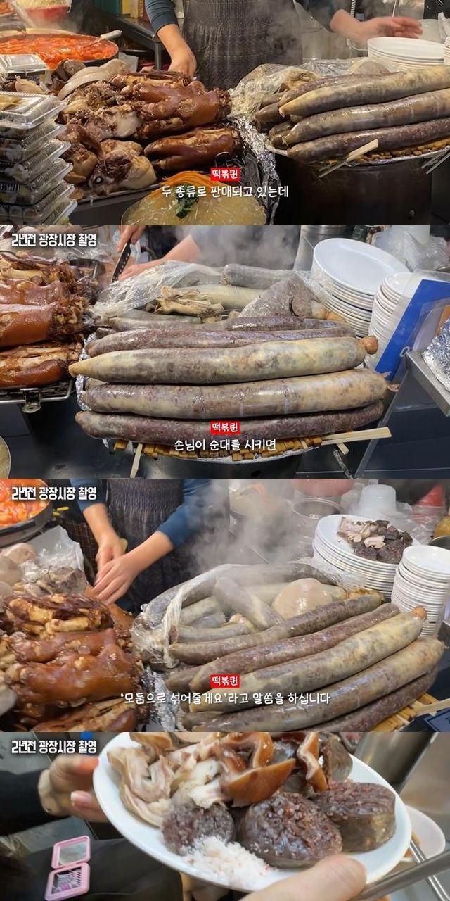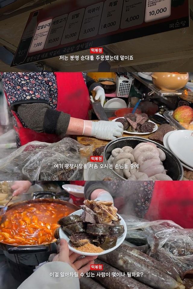유튜버가 외국인 친구랑 광장시장가서 순대랑 고기만두를 시켰는데 순대는 정상적으로 나왔는데