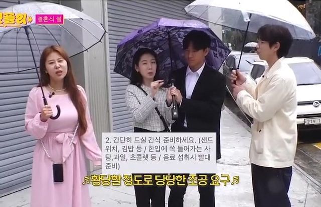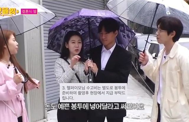 신랑신부들이 자발적으로 챙기는게 아니라 피고용인들이 당당하게 이것저것 해주세요라고 요구하는건 좀 어이없네 ㅋㅋ