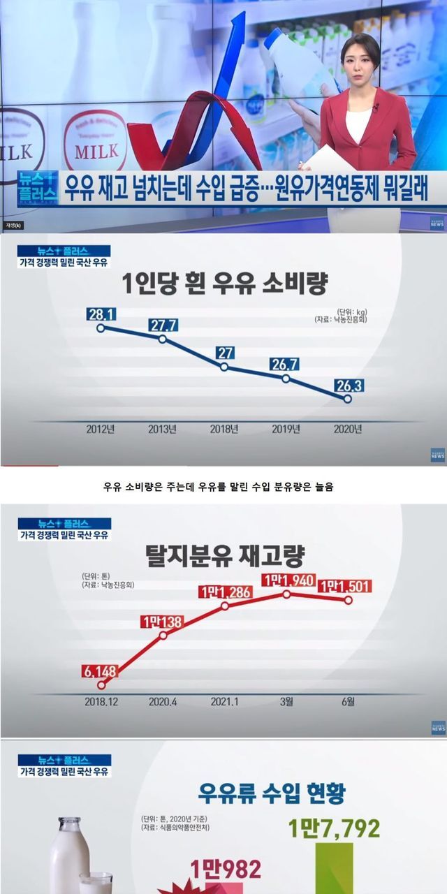 흰 우유를 잘 먹지는 않지만 반대로 우유를 말린 탈지분유는 수입이 늘음