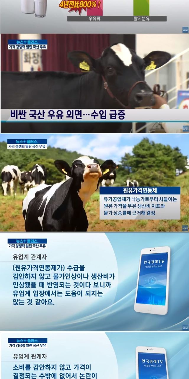 이유는 유가공업체들이 국내 원유 가격이 너무 높으니깐 수입산을 쓰면서 오른 것임