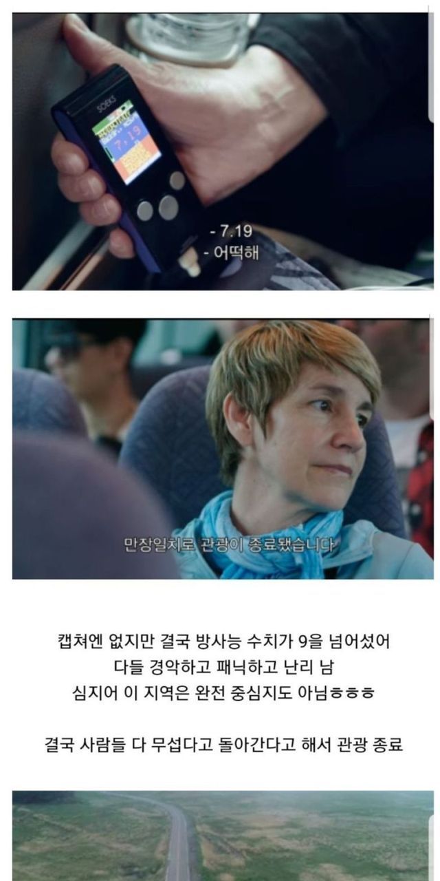차에서 내려서 인근 왔다갔다 하면 마주칠 방사능량은 91.8