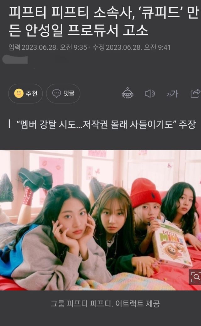 결국 피프티 소속사가 큐피드 만든 프로듀서 사기 배임 업무방해로 고소함ㅋㅋ