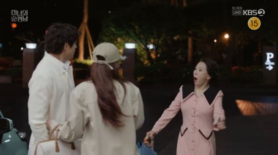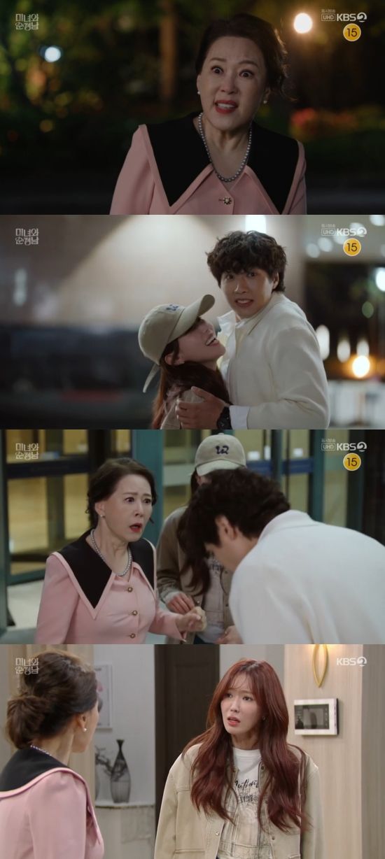 4일 방송된 KBS 2TV '미녀와 순정남' 13회에서는 백미자(차화연 분)가 박도라(임수향)와 고필승(지현우)의 애정행각을 목격한 모습이 그려졌다.