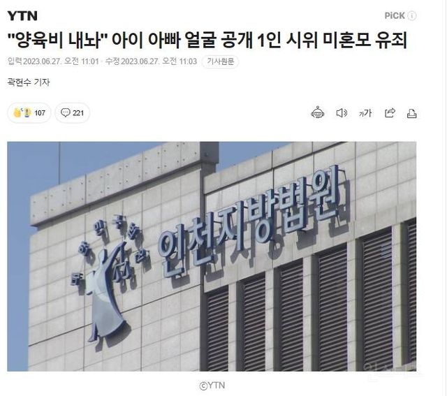 출처 : “양육비 내놔” 아이 아빠 얼굴 공개 1인 시위 미혼모 유죄 (naver.com)